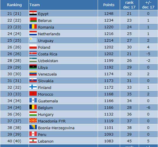 Peringkat Dunia Fifa April 2018 Banyak Kejutan Dari Tim Asia Indonesia Bolalob Com