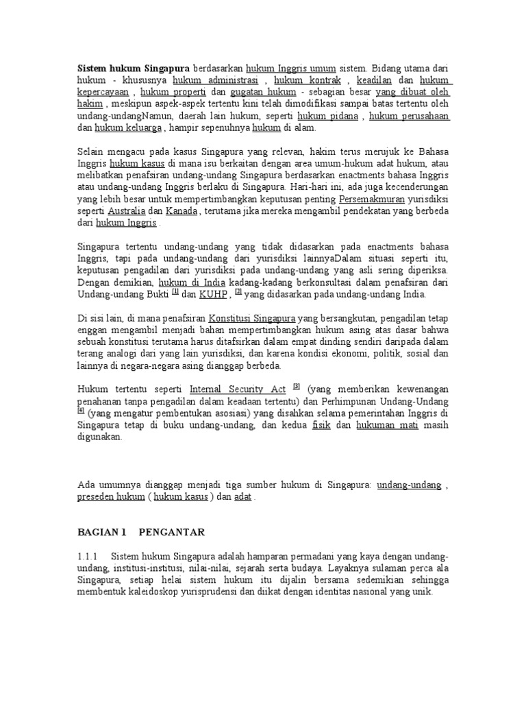 Sistem Hukum Singapura Berdasarkan Hukum Inggris Umum Sistem Bidang Utama Dari