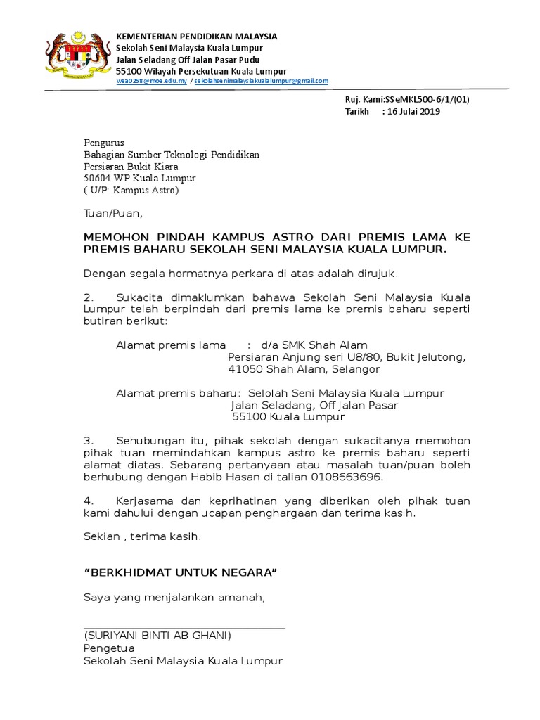 sekolah menengah contoh surat rasmi permohonan pertukaran sekolah anak