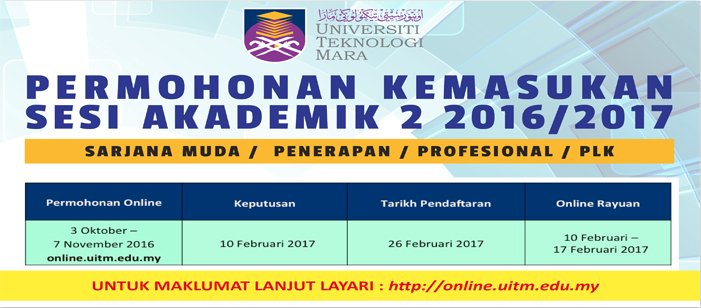 Permohonan Uitm 2016 2017 Sesi Akademik 2 Online Idea Terkini