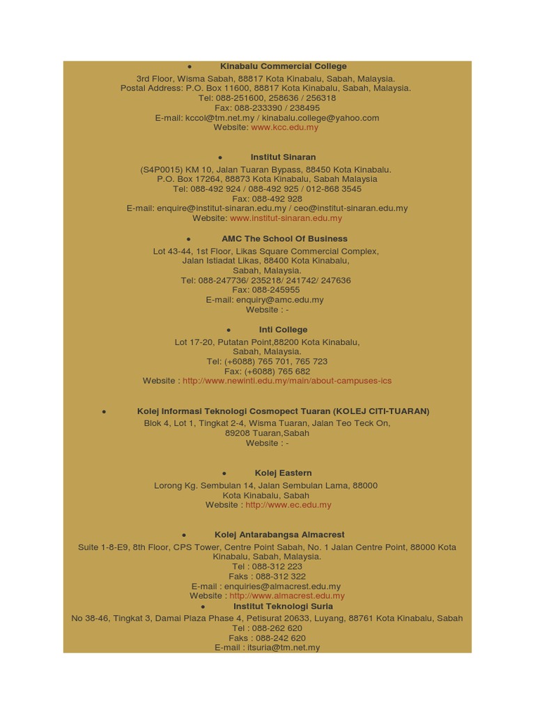 Info Pendidikan Borneo Senarai Senarai Institusi Pengajian Tinggi Ipta Ipts Di Sabah