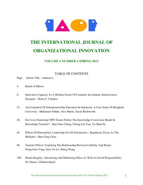 The International Journal Of Organizational Innovation Ijoi