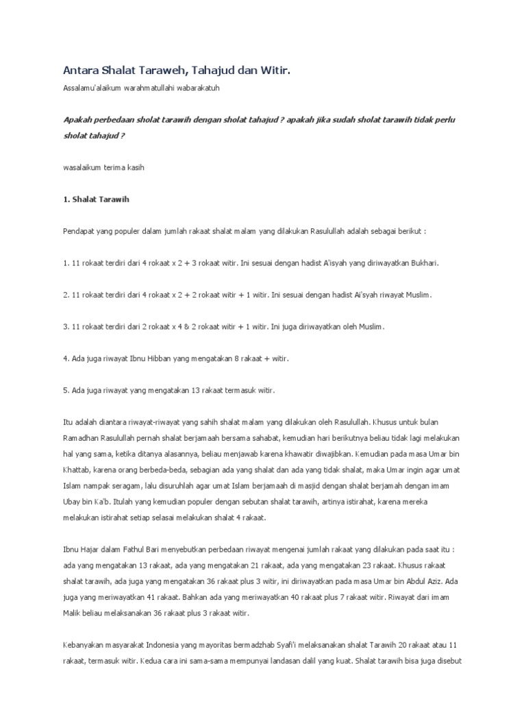 Sholat Tarawih Dan Witir Termasuk Salah Satu Shalat