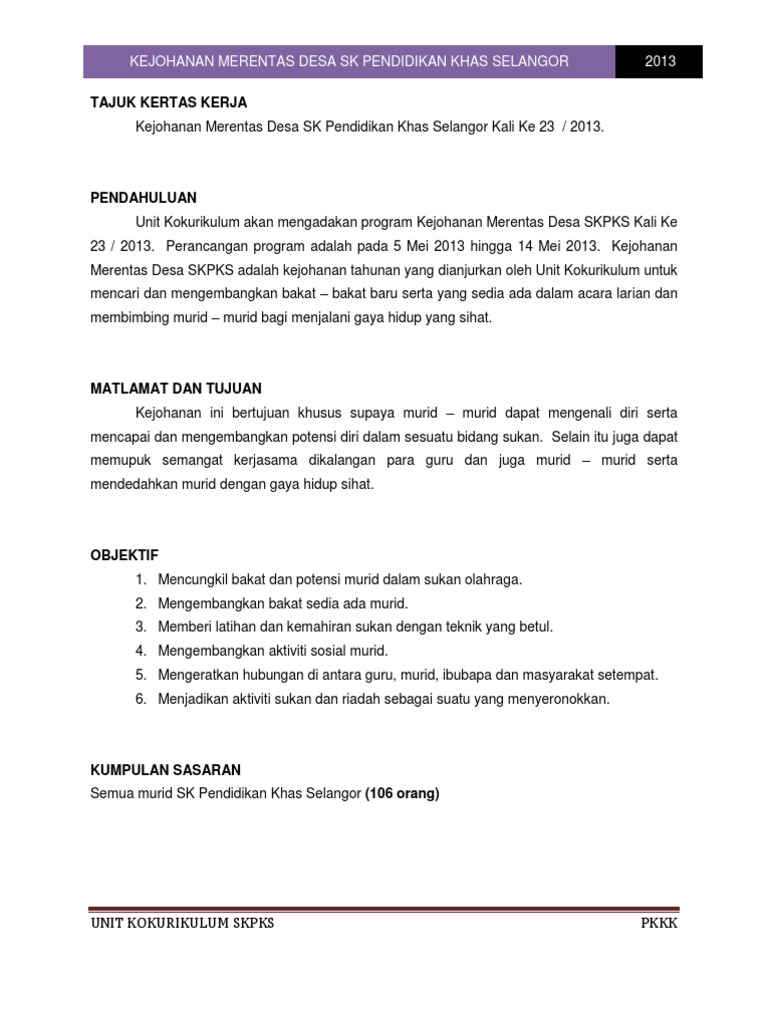 Tajuk Kertas Kerja Kejohanan Merentas Desa Sk Pendidikan Khas Selangor 2013