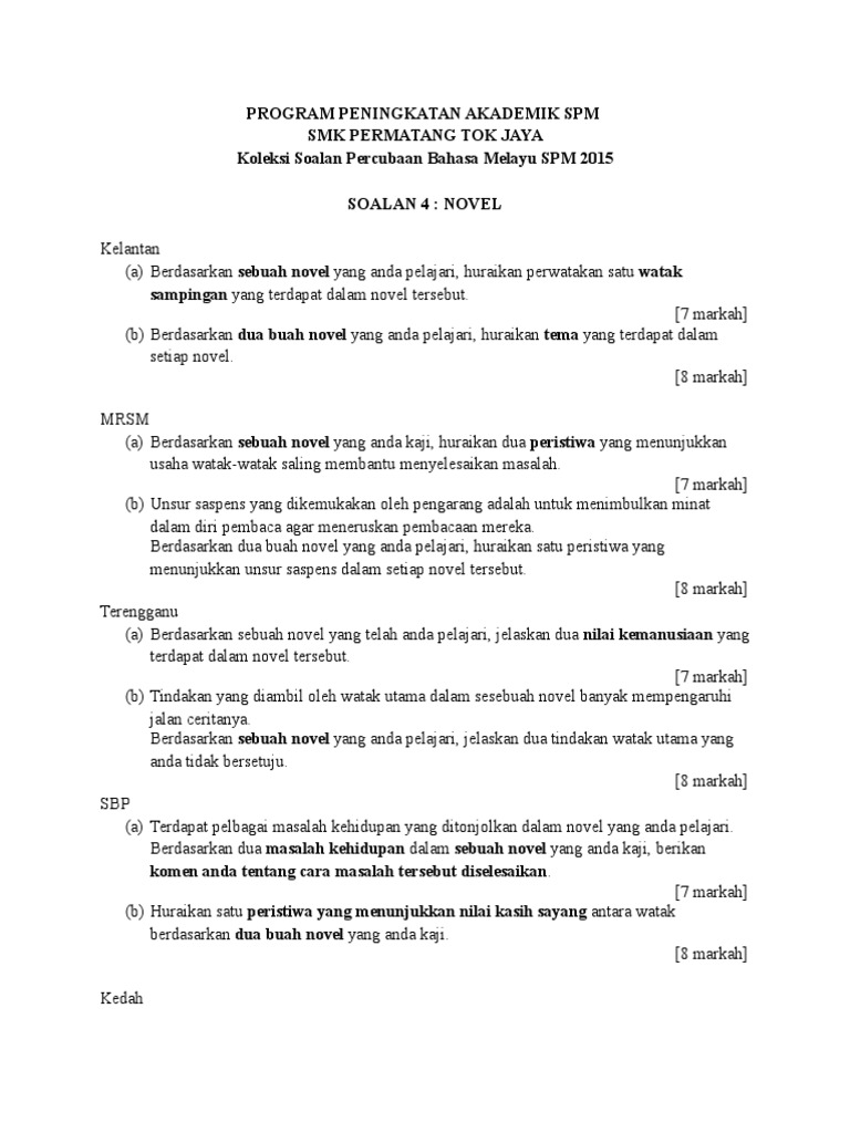 Koleksi Soalan Percubaan Bahasa Melayu Spm 2015