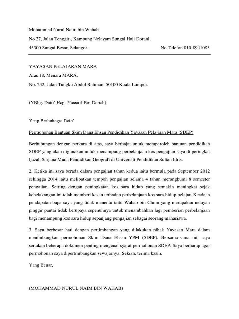 Surat Rasmi Permohonan Sdep Docx