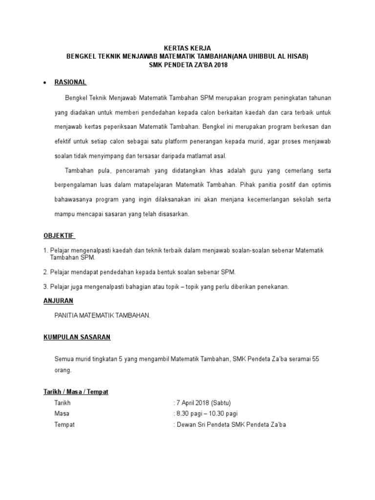 Kertas Kerja Bengkel Teknik Menjawab Addmath Spm