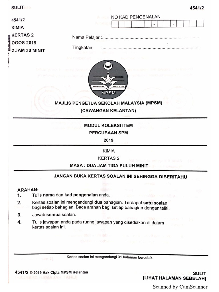 Soalan Percubaan Spm 2019 Kimia Kelantan