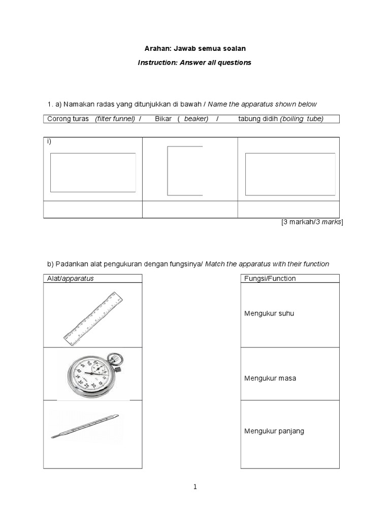 Soalan Peperiksaan Pertengahan Tahun Sains Tingkatan 1