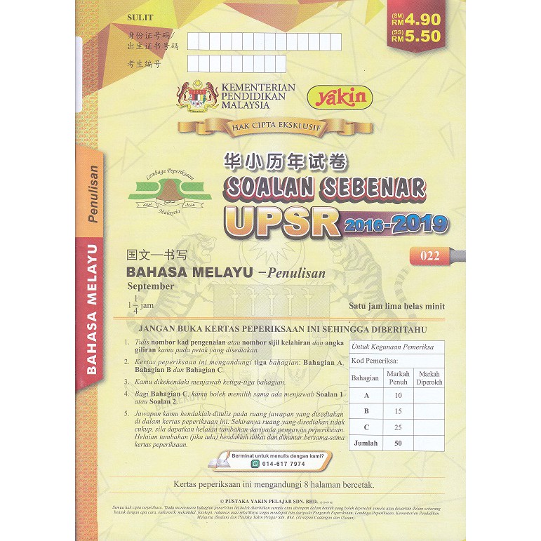 Soalan Sebenar Upsr 2019 Bahasa Melayu Penulisan Buddy Bookstore