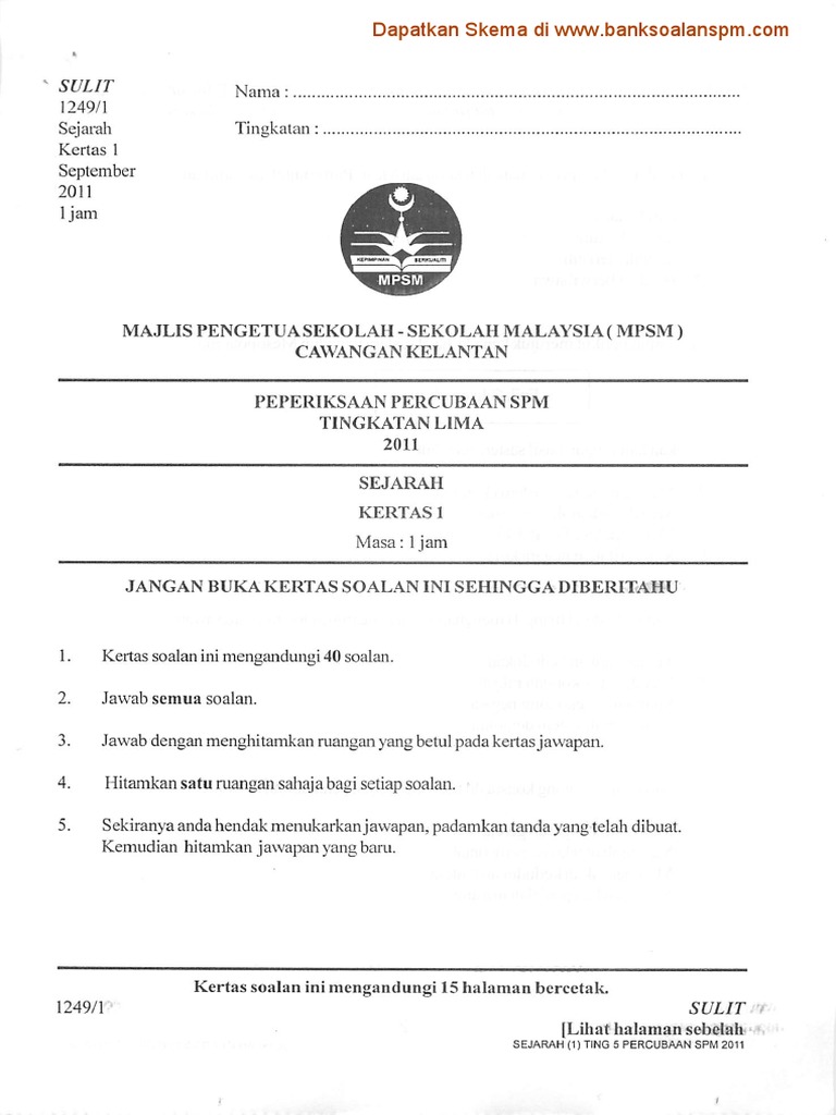Spm Sejarah Kertas 1
