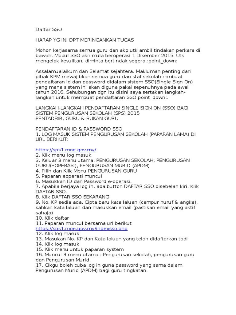 Sso Sistem Pengurusan Sekolah