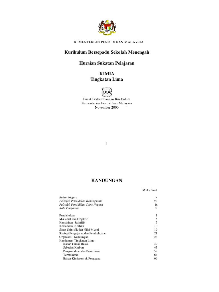 Huraian Sukatan Pelajaran Kimia Tingkatan 5 2013 Pdf Document