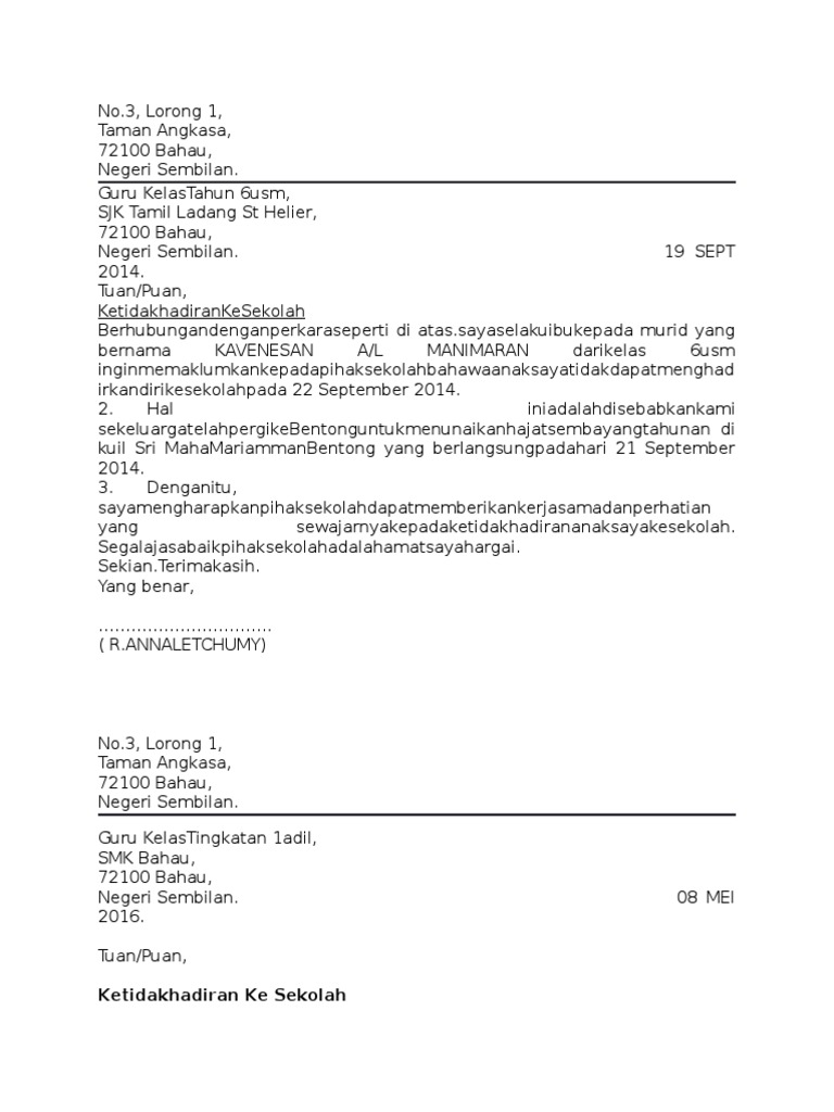 Download 6 Contoh Surat Rasmi Tidak Hadir Sekolah Kuliah Melur Net