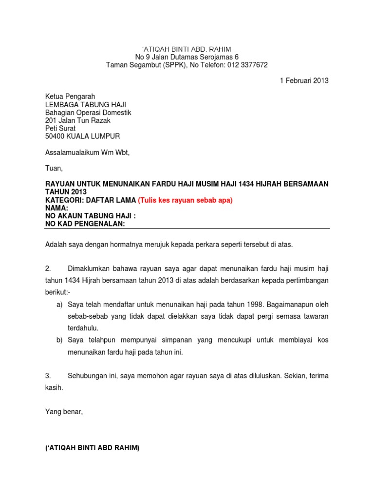 Pdf Contoh Surat Rasmi Rayuan Haji Khairunisa Jumain Academia Edu