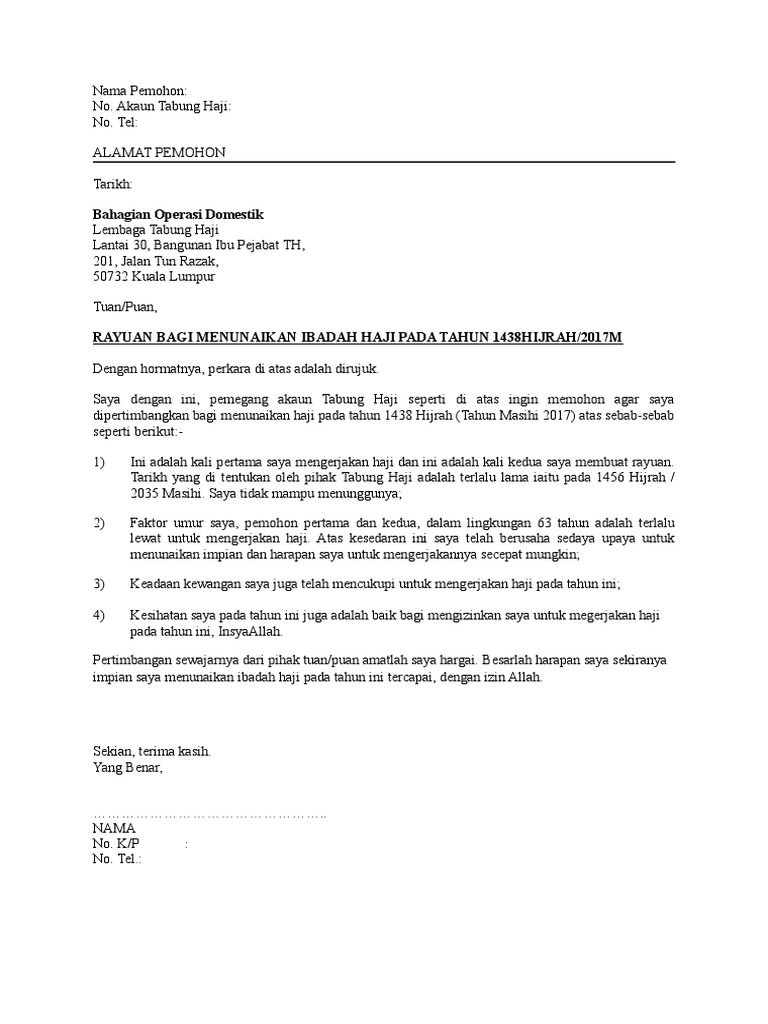 Contoh Surat Rayuan Tabung Haji Doc 2019