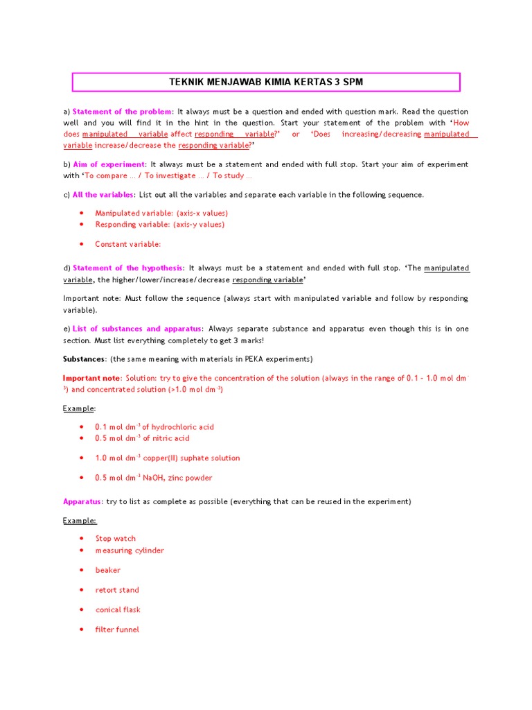 Teknik Menjawab Kimia Kertas 3 Spm My Mediasemasa
