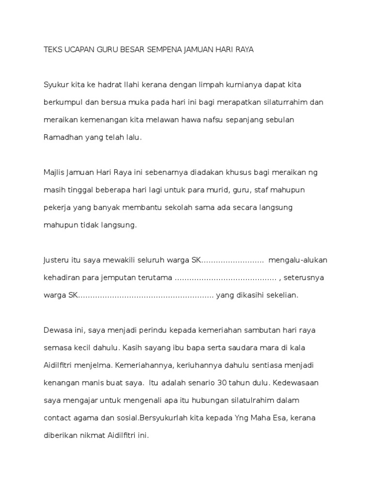 Teks Ucapan Guru Besar Sempena Jamuan Hari Raya