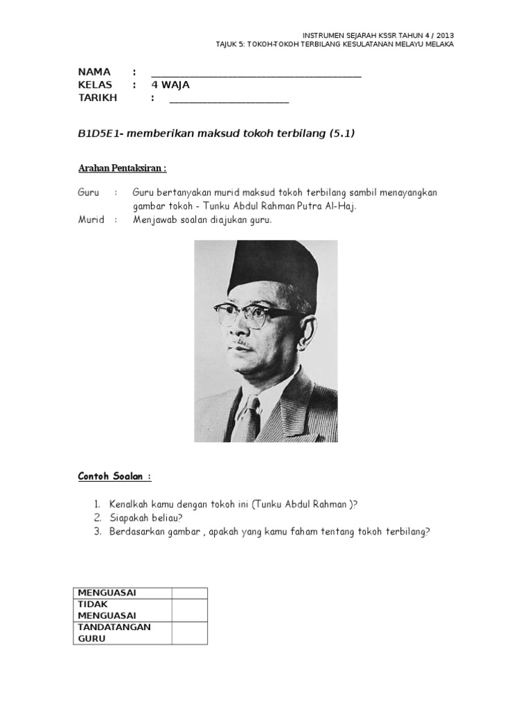 Instrumen Pentaksiran Sejarah Tahun 4 5 1 Murid Cemerlang Doc