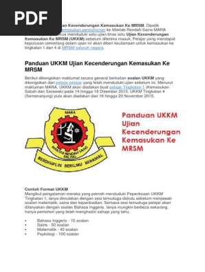Panduan Ukkm Ujian Kecenderungan Kemasukan Ke Mrsm 2015