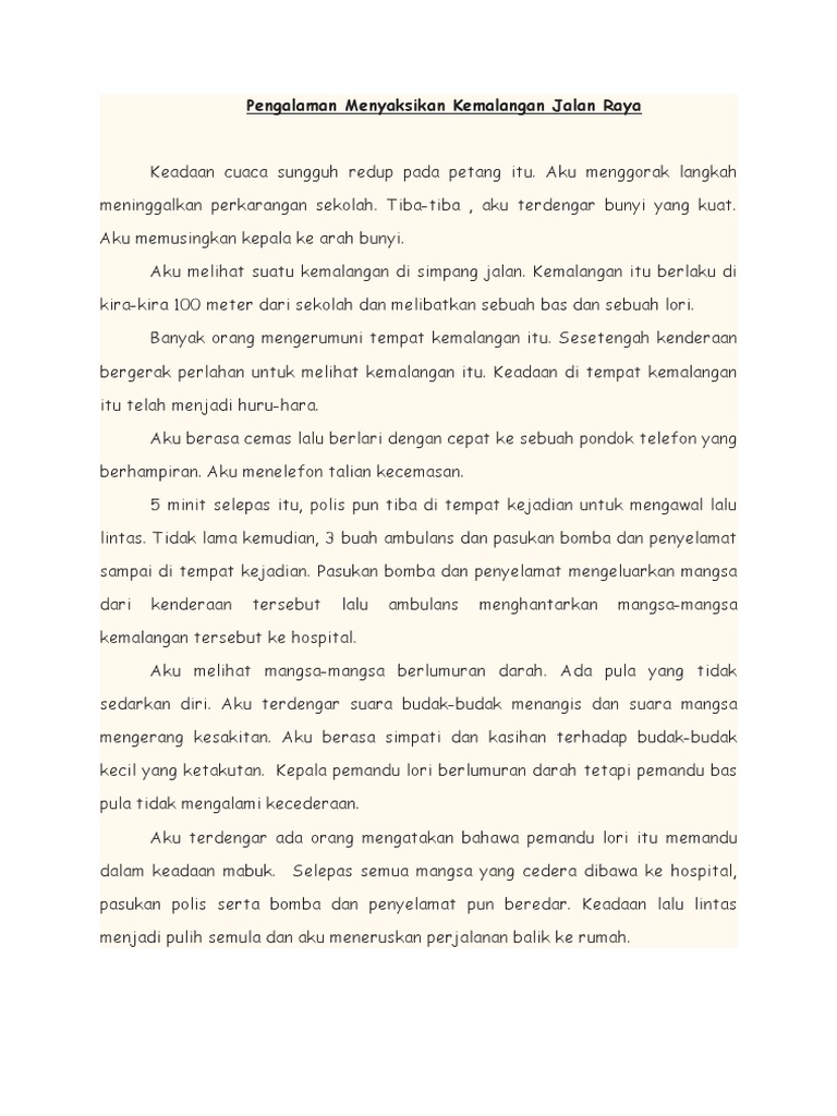Contoh Karangan Tentang Berita Kemalangan Jalan 11 Lickmykickscustoms Powered By Doodlekit