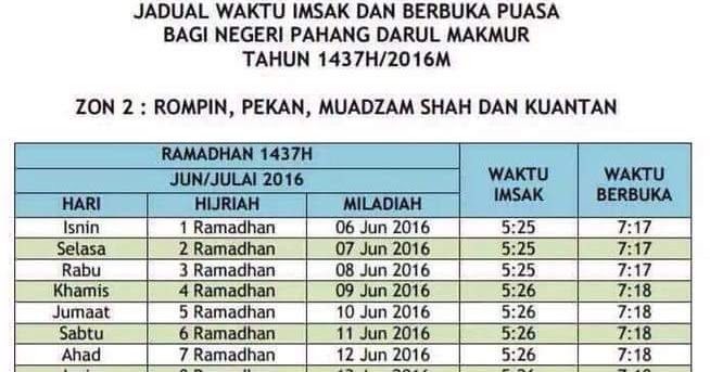 Jadual Waktu Imsak Dan Berbuka Puasa Bagi Negeri Pahang Tahun 1437h 2016m Cerita Ita