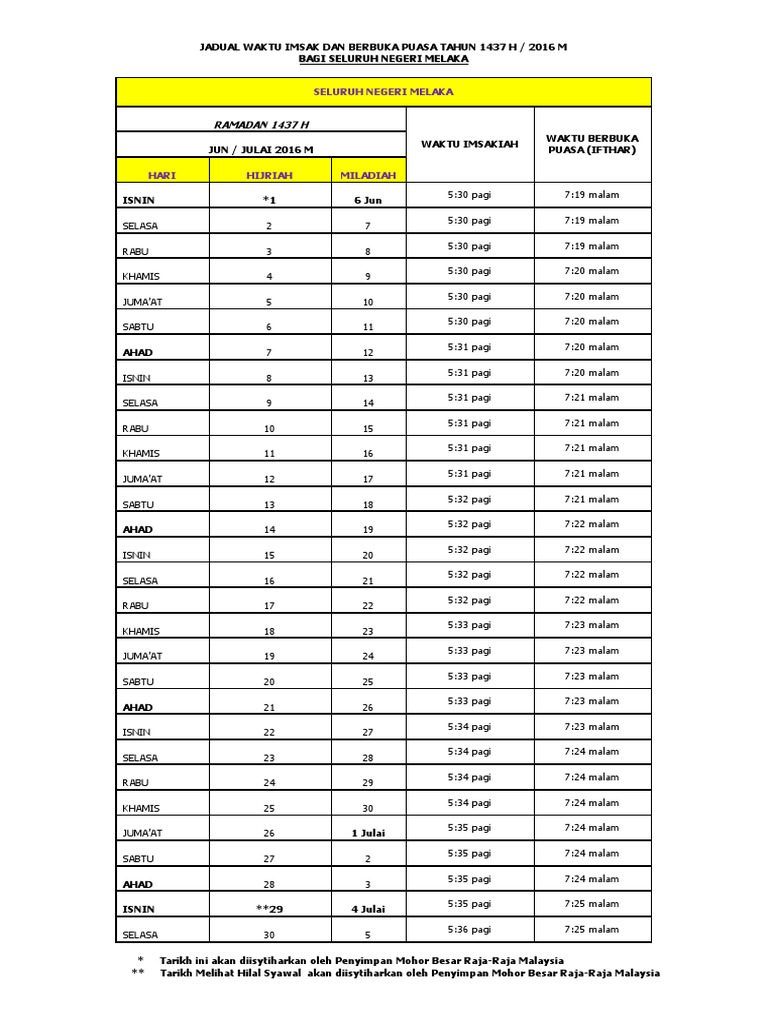Jadual Waktu Imsak Dan Berbuka Puasa Tahun 1437 H 2016 M