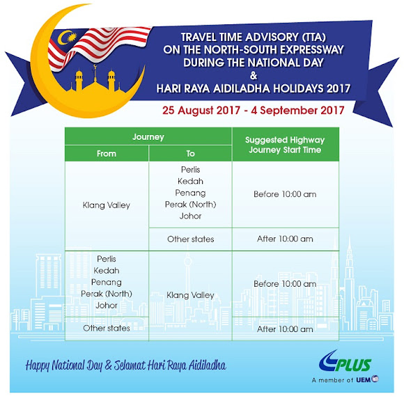 Cadangan Waktu Perjalanan Plus Hari Raya Aidilfitri 2018